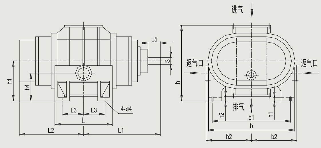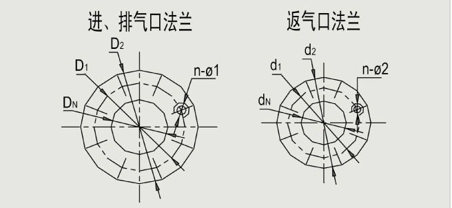 ZJQ-7500/ZJQ-10000罗茨真空泵的排气口法兰尺寸与ZJQ-3750罗茨真空泵的进排气口法兰一致