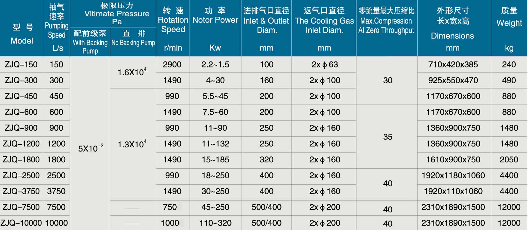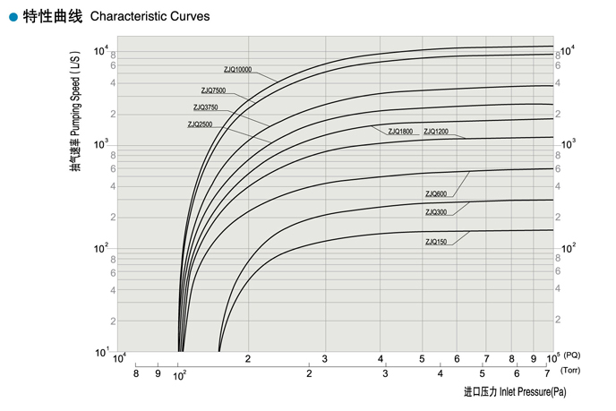注:ZJQ-7500/ZJQ-10000罗茨真空泵的进排气口法兰尺寸不相同,上表给出的是进气口法兰尺寸